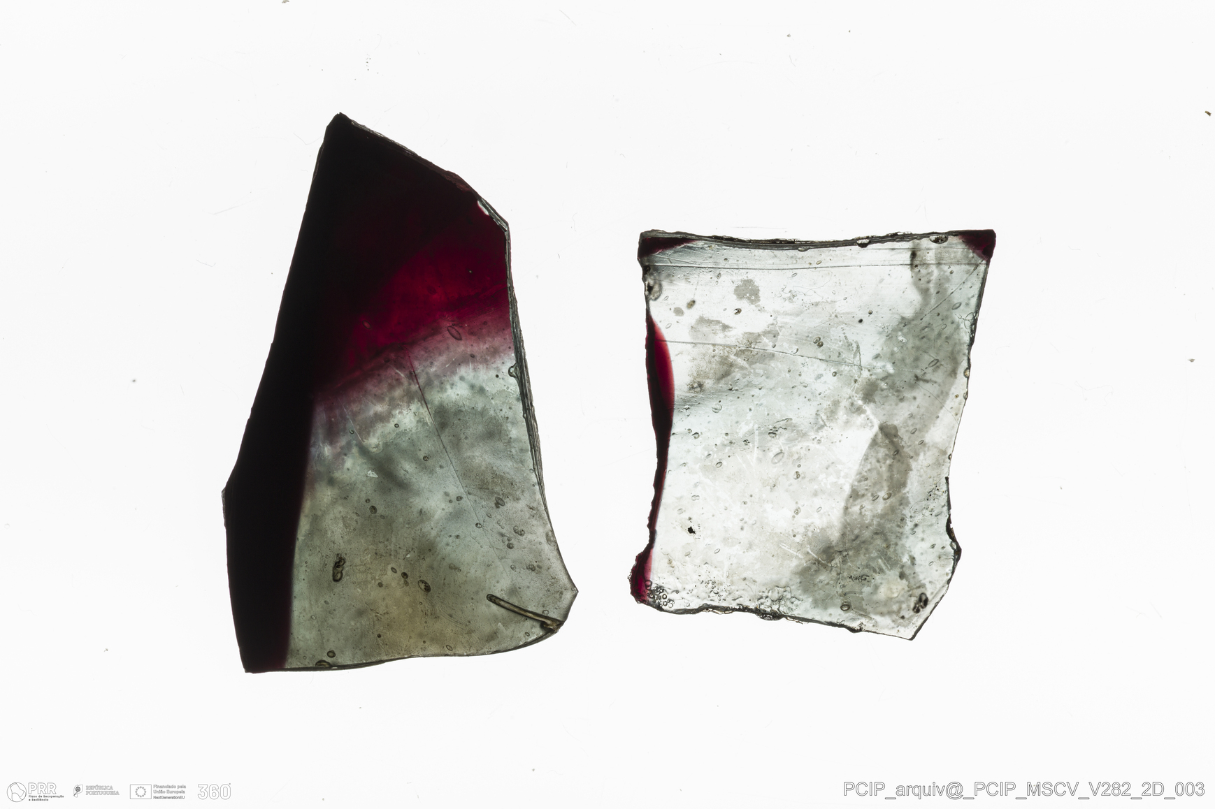 Matéria/Técnica: Vidro; Cronologia: Século XVII; Autoria: Desconhecida; Dimensões: Comprimento: 20mm; Largura: 20mm.