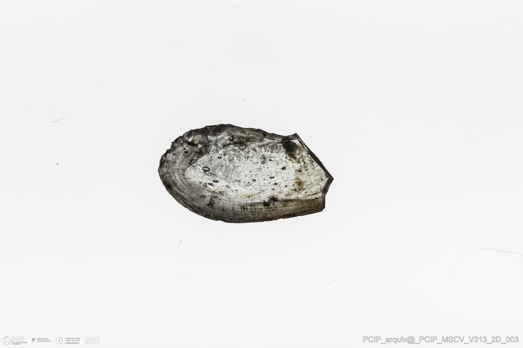 Matéria/Técnica: Vidro; Cronologia: Século XVII; Autoria: Desconhecida; Dimensões: Comprimento: 17mm; Largura: 9mm.