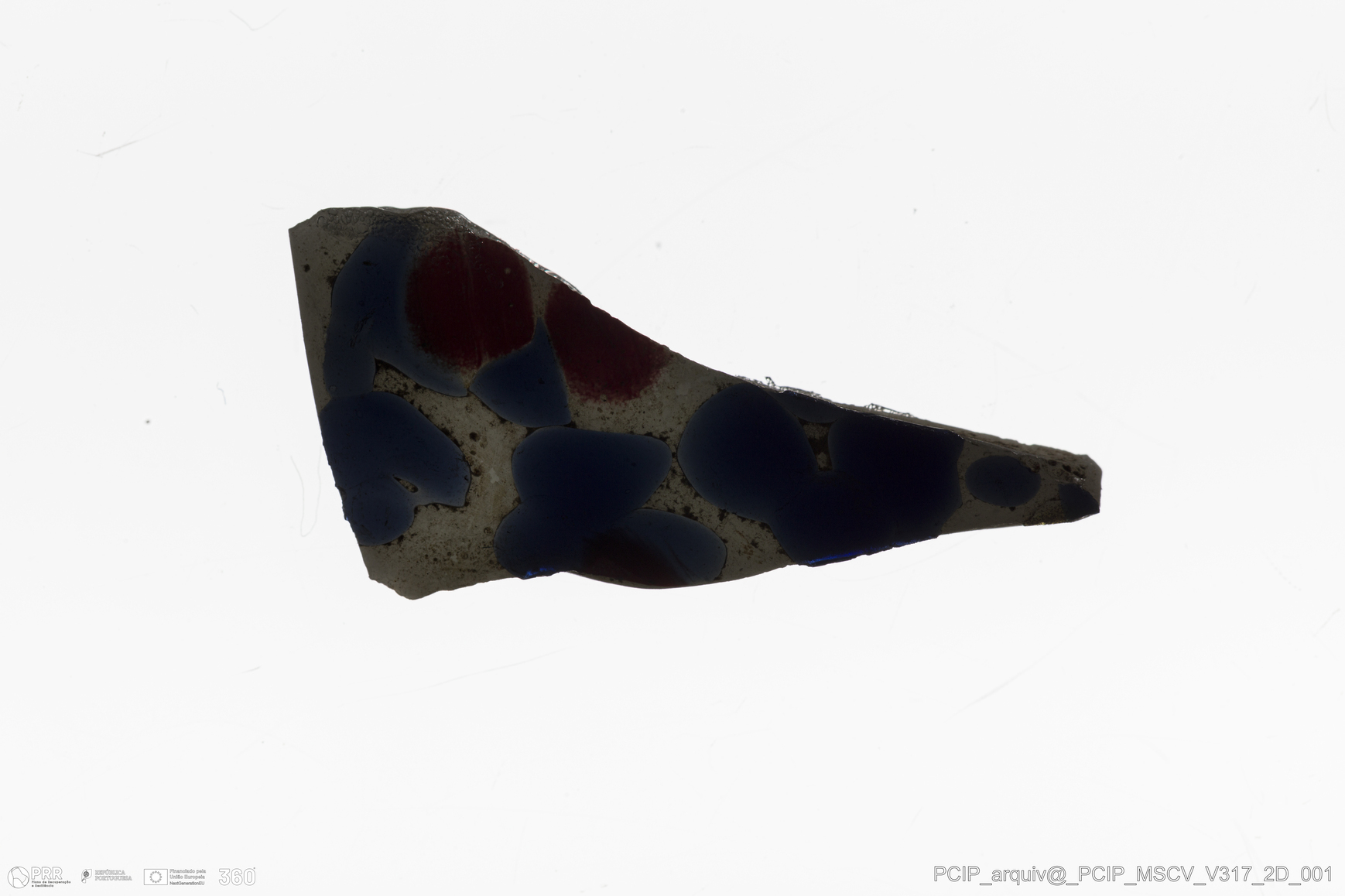 Matéria/Técnica: Vidro; Cronologia: Século XVII; Autoria: Desconhecida; Dimensões: Comprimento: 25mm; Largura: 16mm.