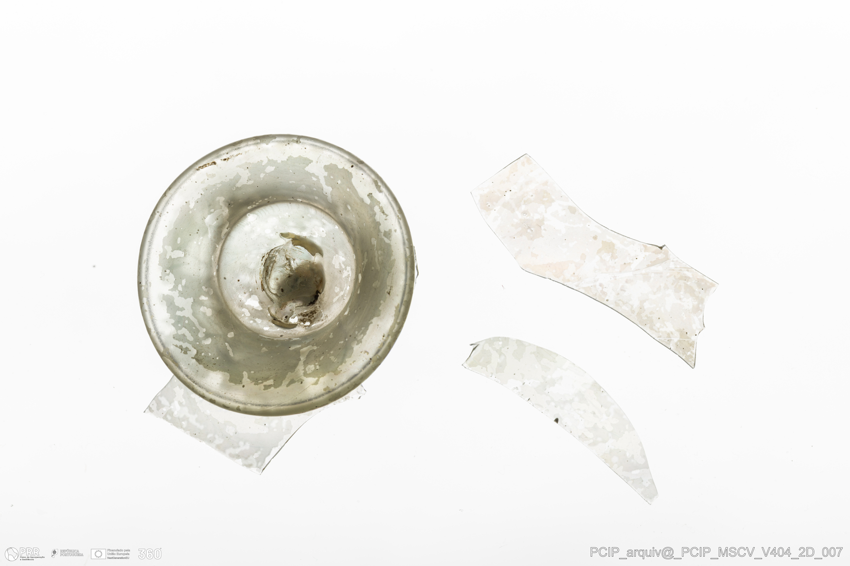 Matéria/Técnica: Vidro; Cronologia: Século XVII; Autoria: Desconhecida; Dimensões: Diâmetro base: 47mm.