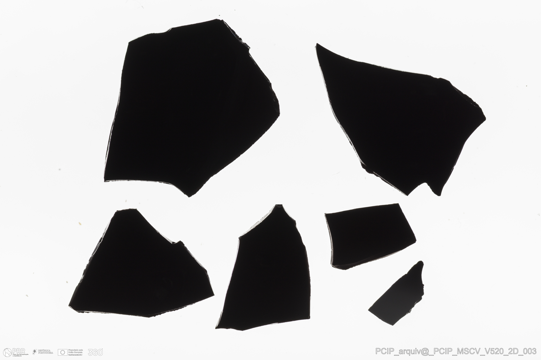 Matéria/Técnica: Vidro; Cronologia: Século XVII; Autoria: Desconhecida; Dimensões: Comprimento: 30mm; Largura: 28mm.