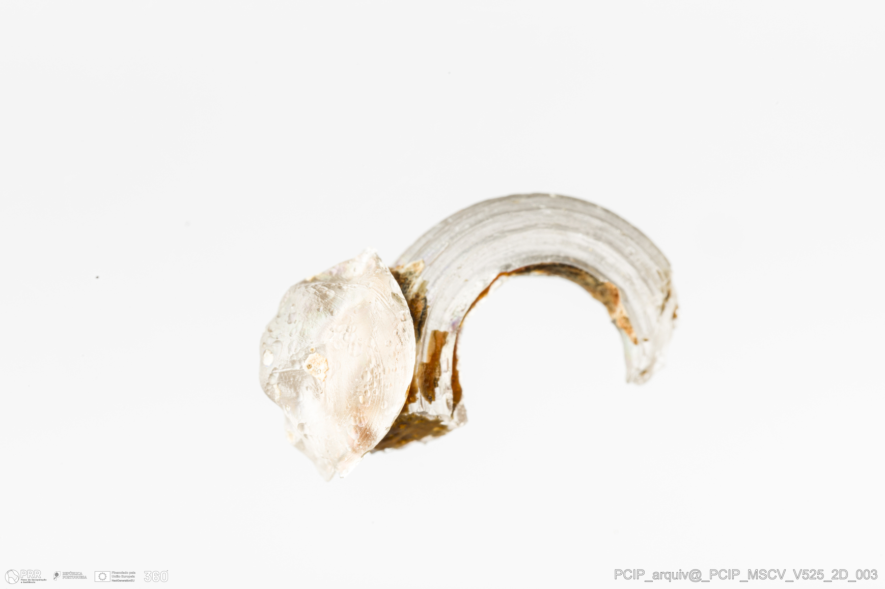 Matéria/Técnica: Vidro; Cronologia: Século XVII; Autoria: Desconhecida; Dimensões: Largura: 13mm; Altura: 23mm.