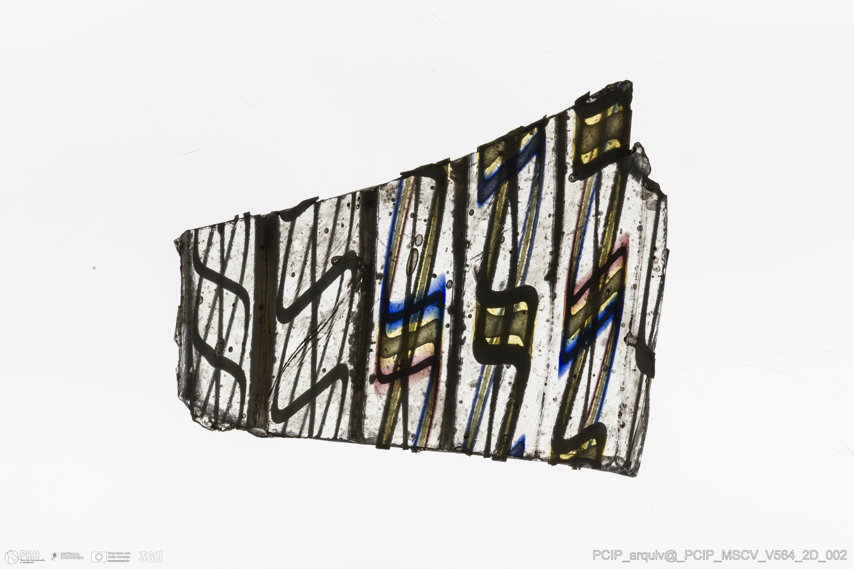 Matéria/Técnica: Vidro; Cronologia: Século XVII; Autoria: Desconhecida; Dimensões: comprimento: 36mm; Largura: 28mm.