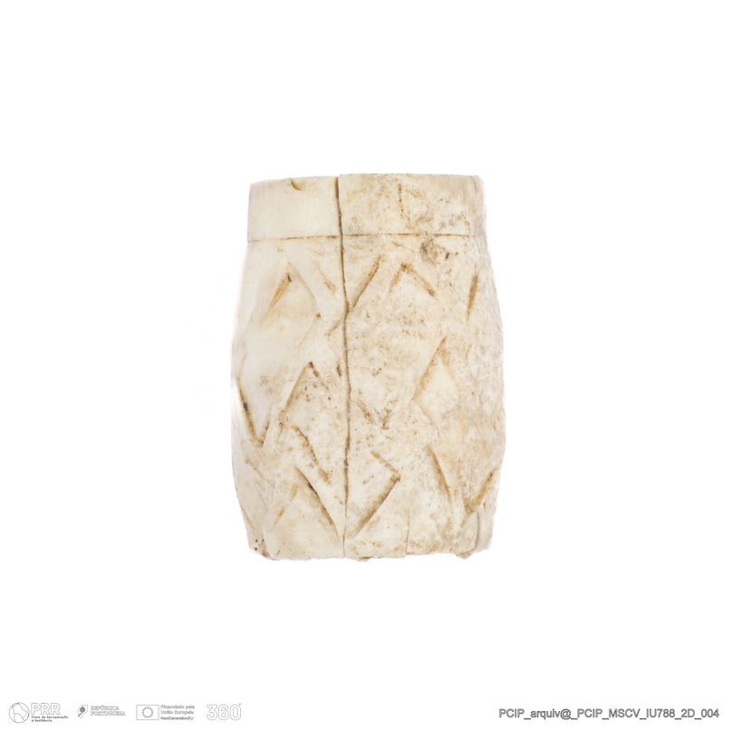 Matéria/Técnica: Osso; Cronologia: Século XVII; Autoria: Desconhecida; Dimensões: comprimento: 21mm; Largura: 15mm.