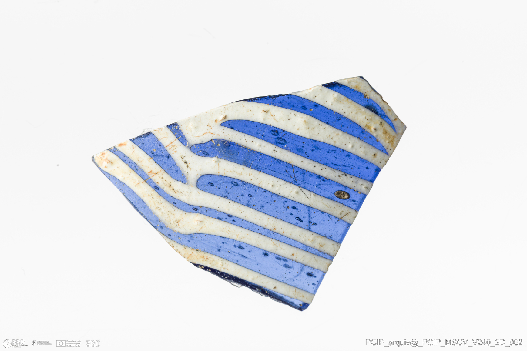 Matéria/Técnica: Vidro; Cronologia: Século XVII; Autoria: Desconhecida; Dimensões: Comprimento: 16mm; Largura: 20mm.