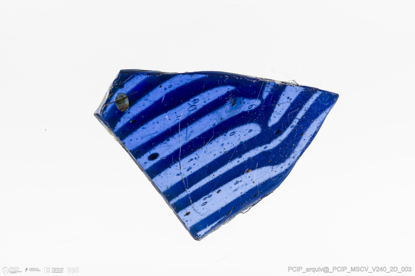 Matéria/Técnica: Vidro; Cronologia: Século XVII; Autoria: Desconhecida; Dimensões: Comprimento: 16mm; Largura: 20mm.