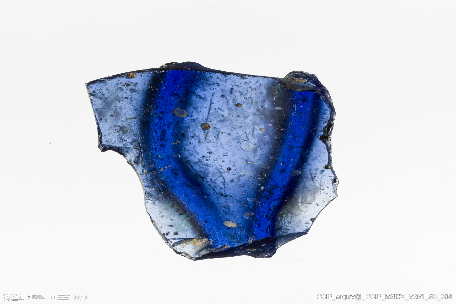 Matéria/Técnica: Vidro; Cronologia: Século XVII; Autoria: Desconhecida; Dimensões: Comprimento: 26mm; Largura: 19mm.