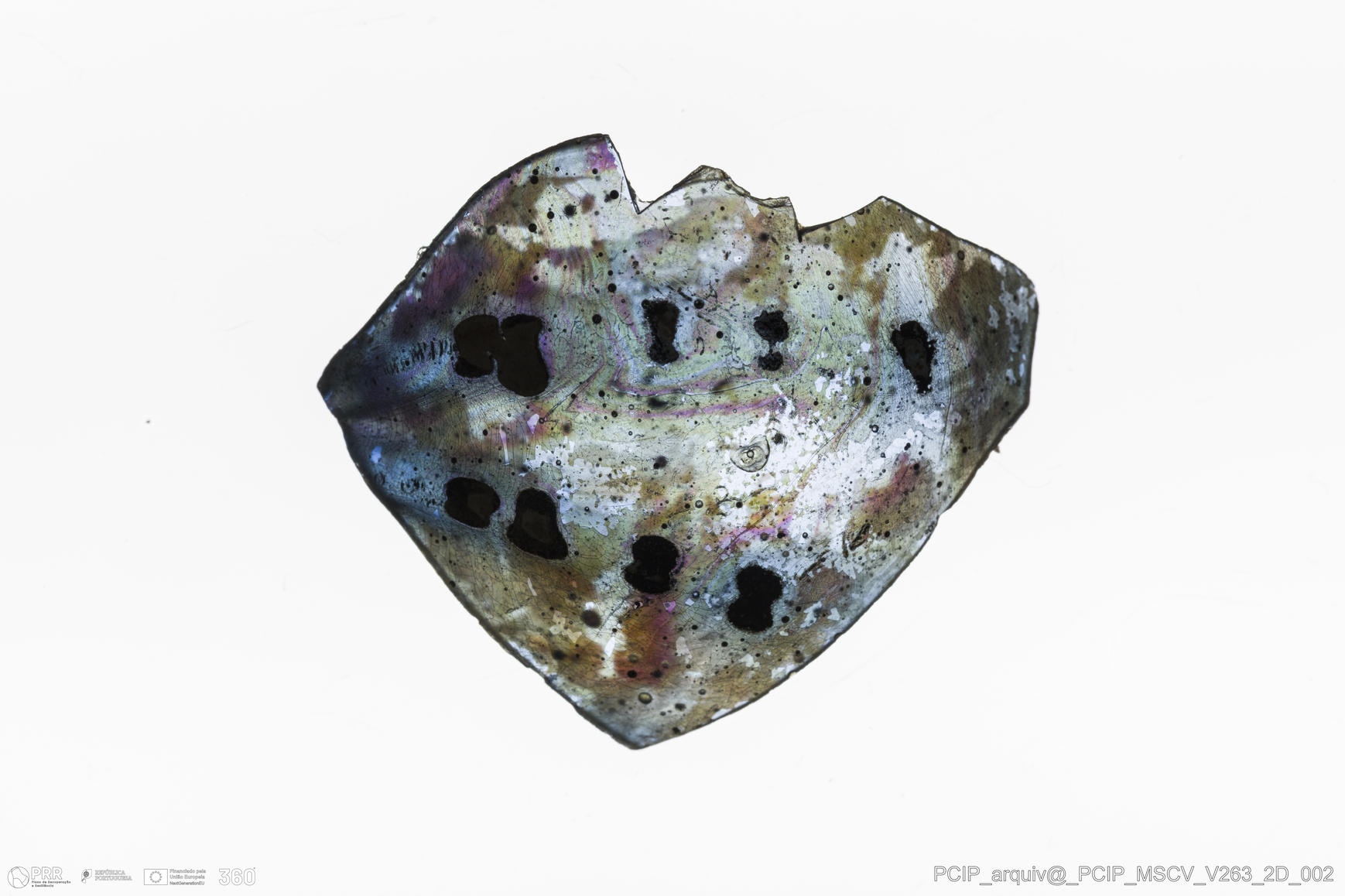Matéria/Técnica: Vidro; Cronologia: Século XVII; Autoria: Desconhecida; Dimensões: Comprimento: 32mm; Largura: 28mm.