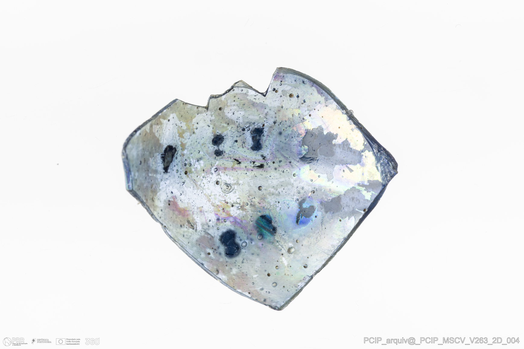 Matéria/Técnica: Vidro; Cronologia: Século XVII; Autoria: Desconhecida; Dimensões: Comprimento: 32mm; Largura: 28mm.