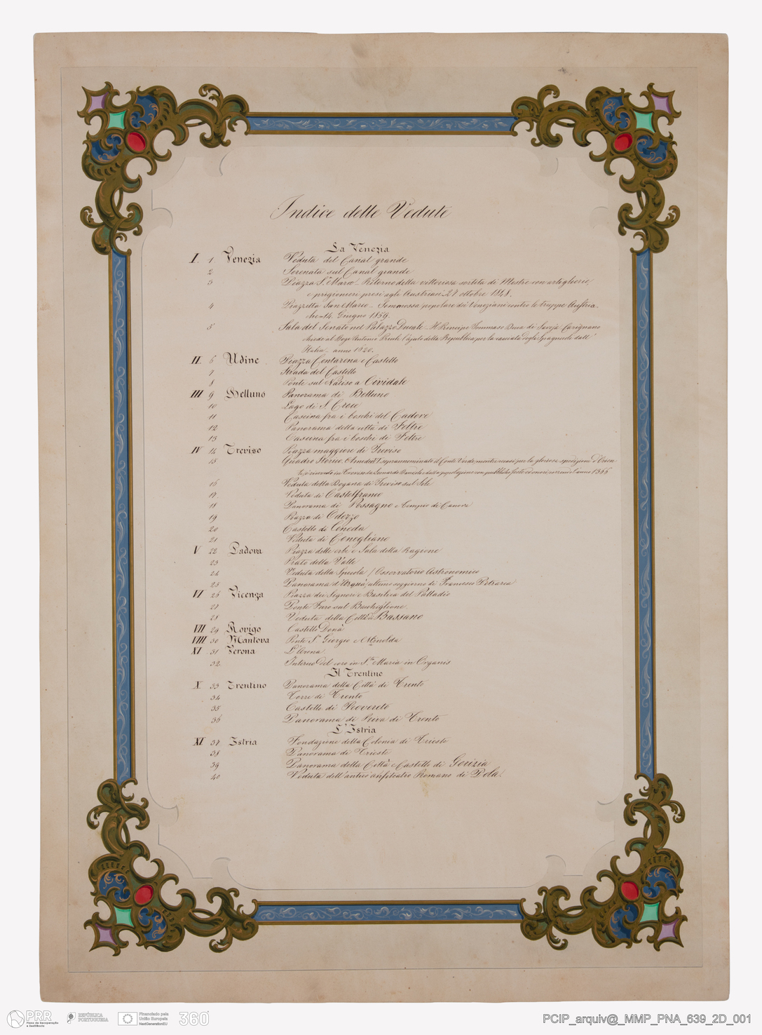 Documento simples. PNA_639_2D_001 - Indice delle Vedute