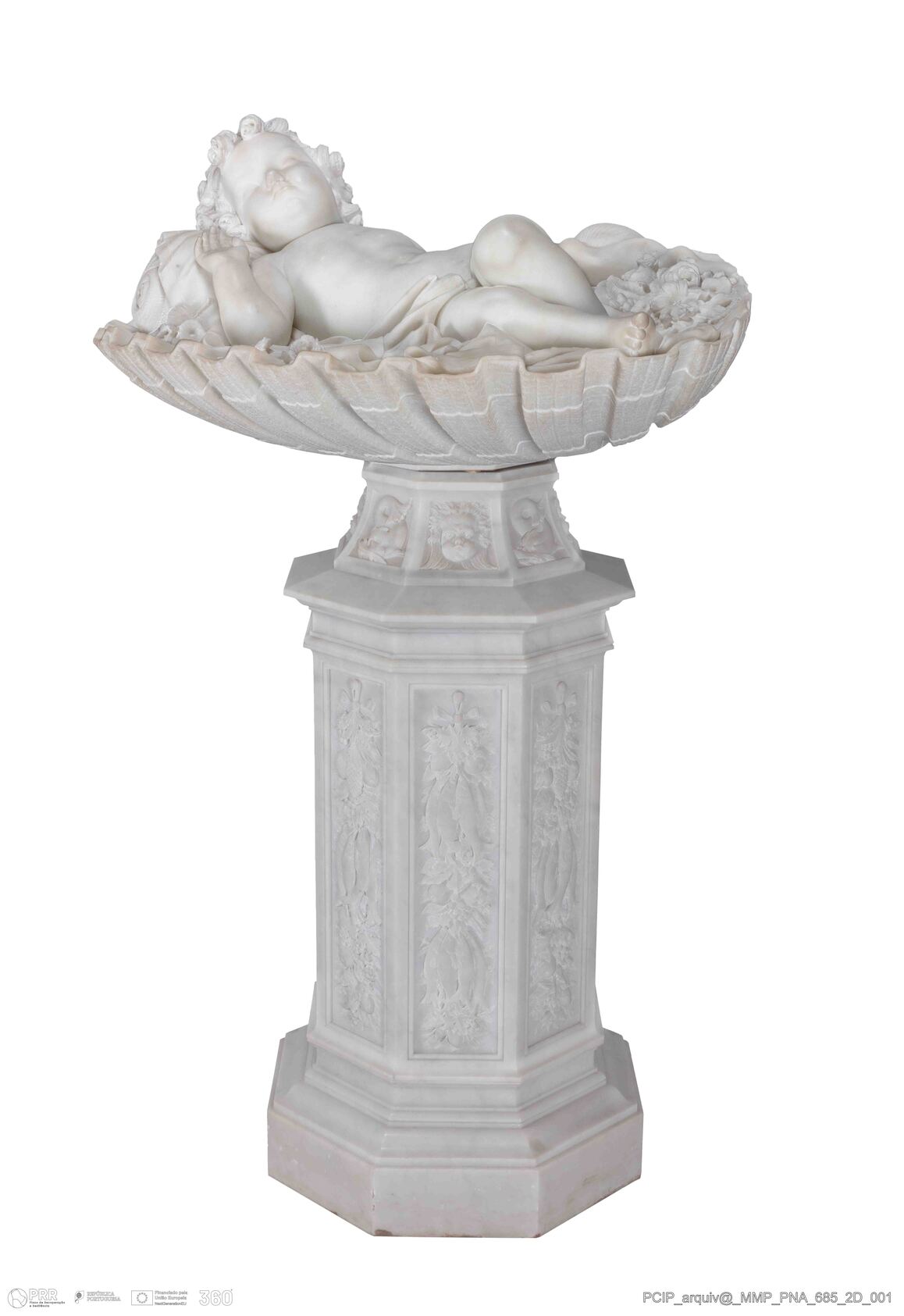 Matéria/Técnica: Mármore; Cronologia: 1869; Autoria: Sighinolfi, Cesare; Dimensões (cm): Altura: 47; Largura: 96; Profundidade: 76.