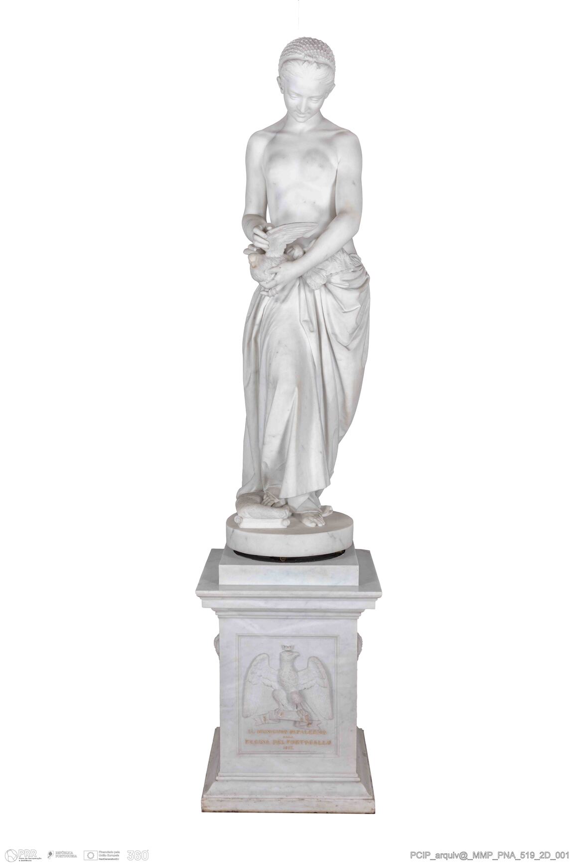 Matéria/Técnica: Mármore; Cronologia: 1860; Autoria: Delisi, Benedetto; Dimensões: Altura: 172 cm; Largura: 38 cm.