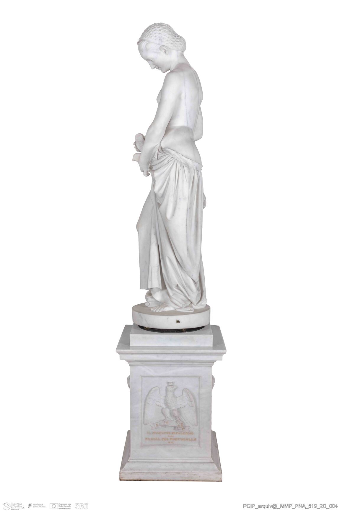 Matéria/Técnica: Mármore; Cronologia: 1860; Autoria: Delisi, Benedetto; Dimensões (cm): Altura: 172 cm; Largura: 38 cm.