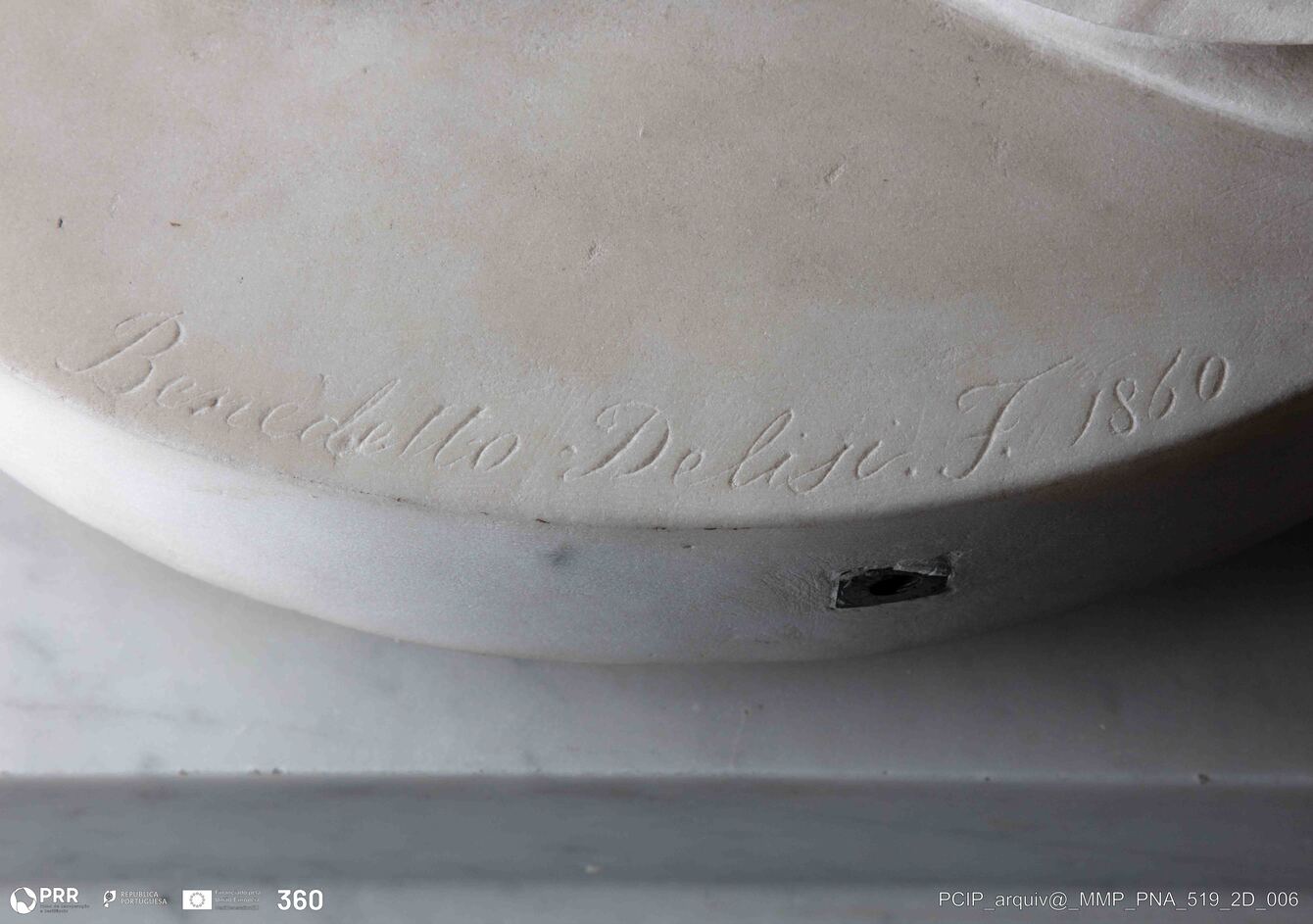 Matéria/Técnica: Mármore; Cronologia: 1860; Autoria: Delisi, Benedetto; Dimensões (cm): Altura: 172 cm; Largura: 38 cm.