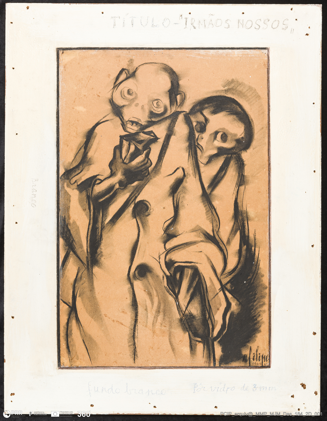 Matéria/Técnica: Carvão sobre papel; Cronologia: 1944; Autoria: Manuel Filipe; Dimensões: 51 x 33,5 cm.