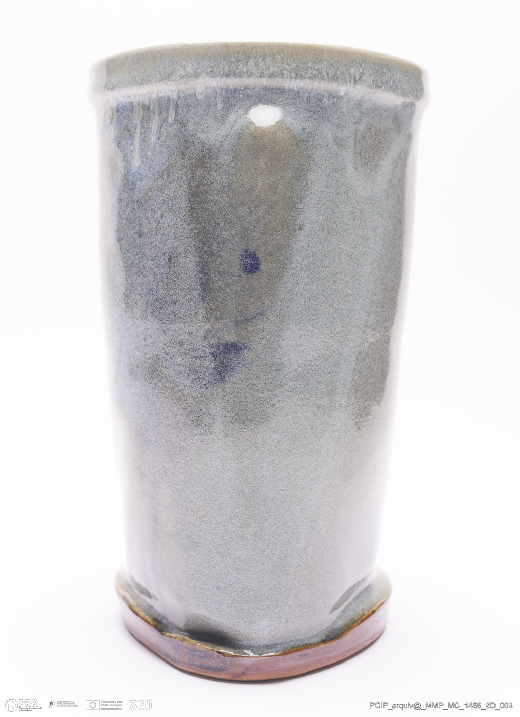 Matéria/Técnica: Grés ridado e modelado. Cozedura redutora a 1300º; Cronologia: 1985; Autoria: Eduardo Constantino / Atelier de Ceramique de Eduardo Constantino, Quimperlé/Bretanha, França; Dimensões (cm): Altura: 20,5; Largura: 15,5.