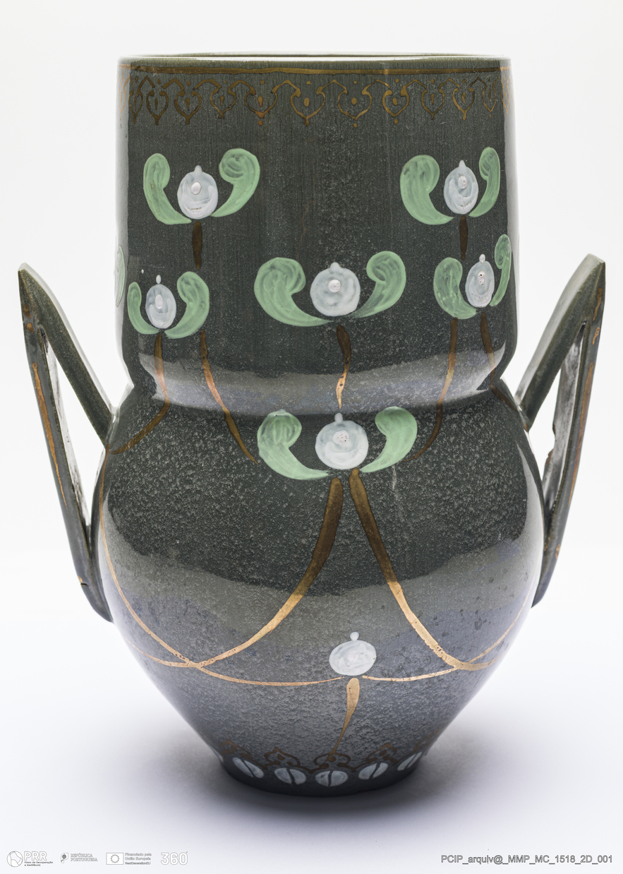Matéria/Técnica: Barro moldado. Vidrado verde; Cronologia: 1903; Autoria: Rafael Bordalo Pinheiro / Fábrica De Faianças Bordalo Pinheiro, Caldas da Rainha, Portugal; Dimensões (cm): Altura: 24,5; Largura: 20; Comprimento: 15.