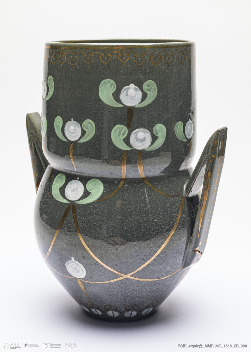 Matéria/Técnica: Barro moldado. Vidrado verde; Cronologia: 1903; Autoria: Rafael Bordalo Pinheiro / Fábrica De Faianças Bordalo Pinheiro, Caldas da Rainha, Portugal; Dimensões (cm): Altura: 24,5; Largura: 20; Comprimento: 15.