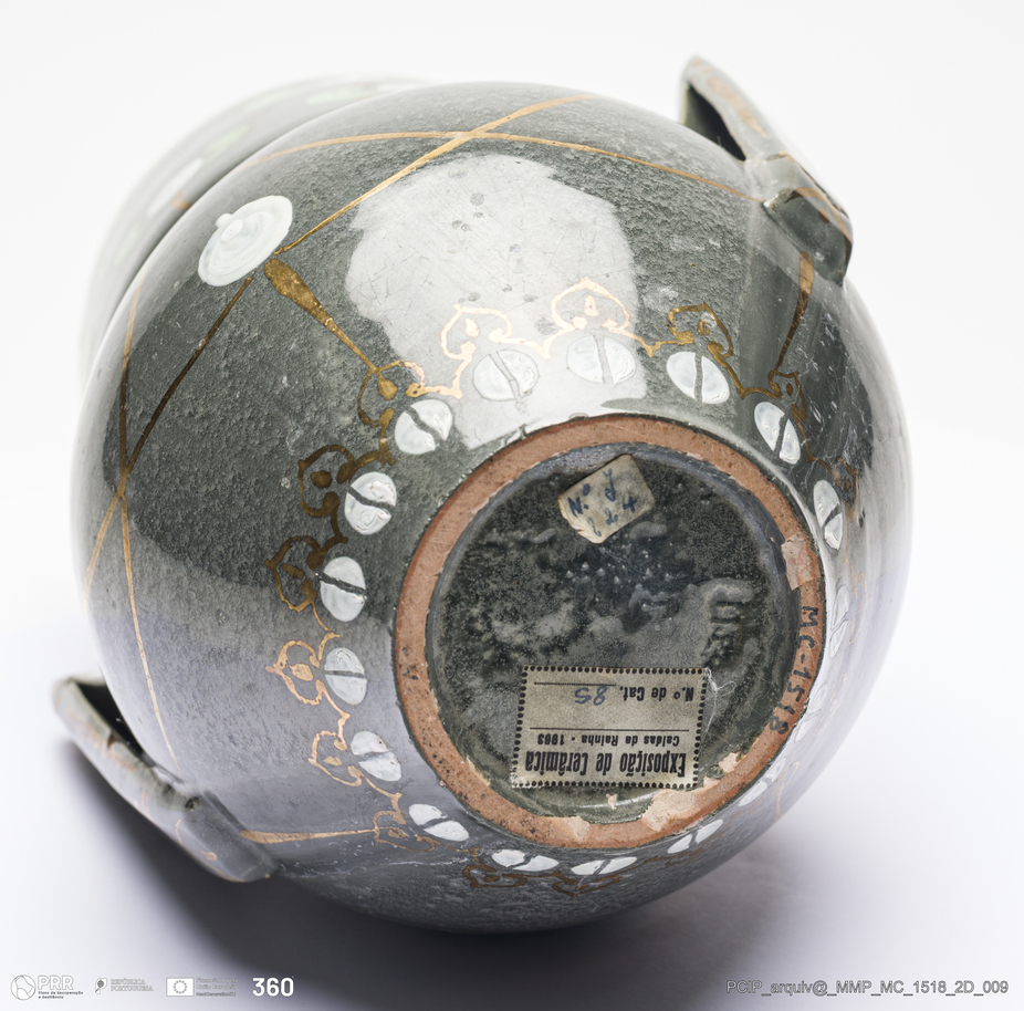 Matéria/Técnica: Barro moldado. Vidrado verde; Cronologia: 1903; Autoria: Rafael Bordalo Pinheiro / Fábrica De Faianças Bordalo Pinheiro, Caldas da Rainha, Portugal; Dimensões (cm): Altura: 24,5; Largura: 20; Comprimento: 15.