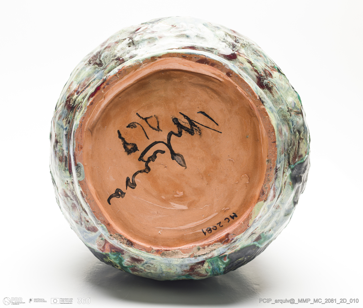 Matéria/Técnica: Barro vermelho modelado. Vidrado polícromo: escorridos azul, verde e cinzento; Cronologia: 1969; Autoria: Maria Luisa Fragoso / Estúdio Escola de Cerâmica, Lisboa, Portugal; Dimensões (cm): Altura: 45; Diâmetro: 17,5.
