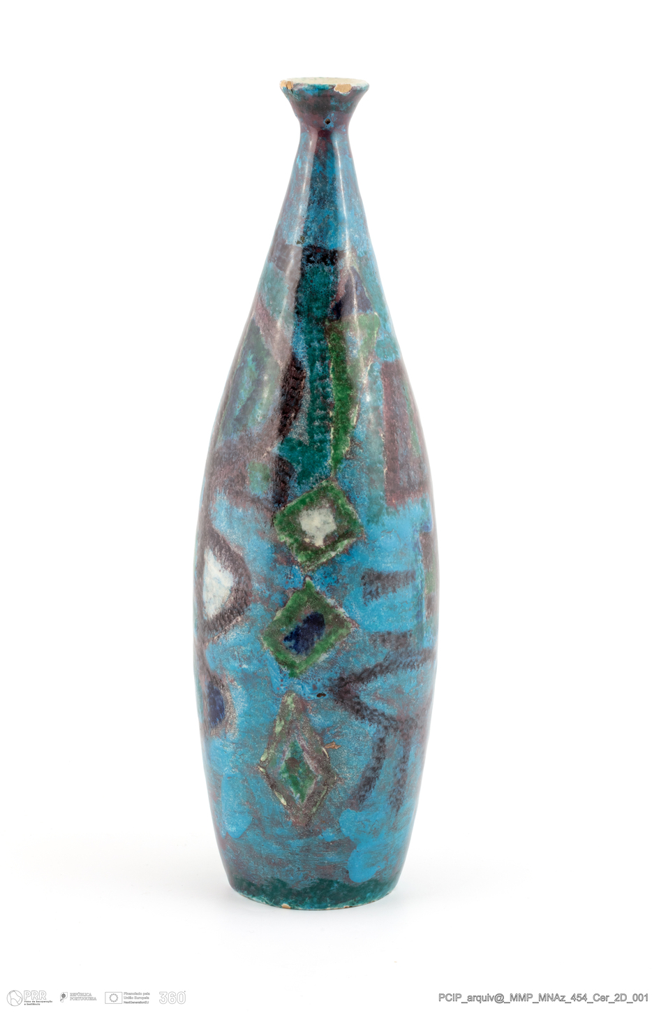 Matéria/ Técnica: Faiança; Cronologia: 1960-1965; Autoria: Segurado, João Lopes; Dimensões (cm): Altura: 35,5 cm; Diâmetro: 11 cm.