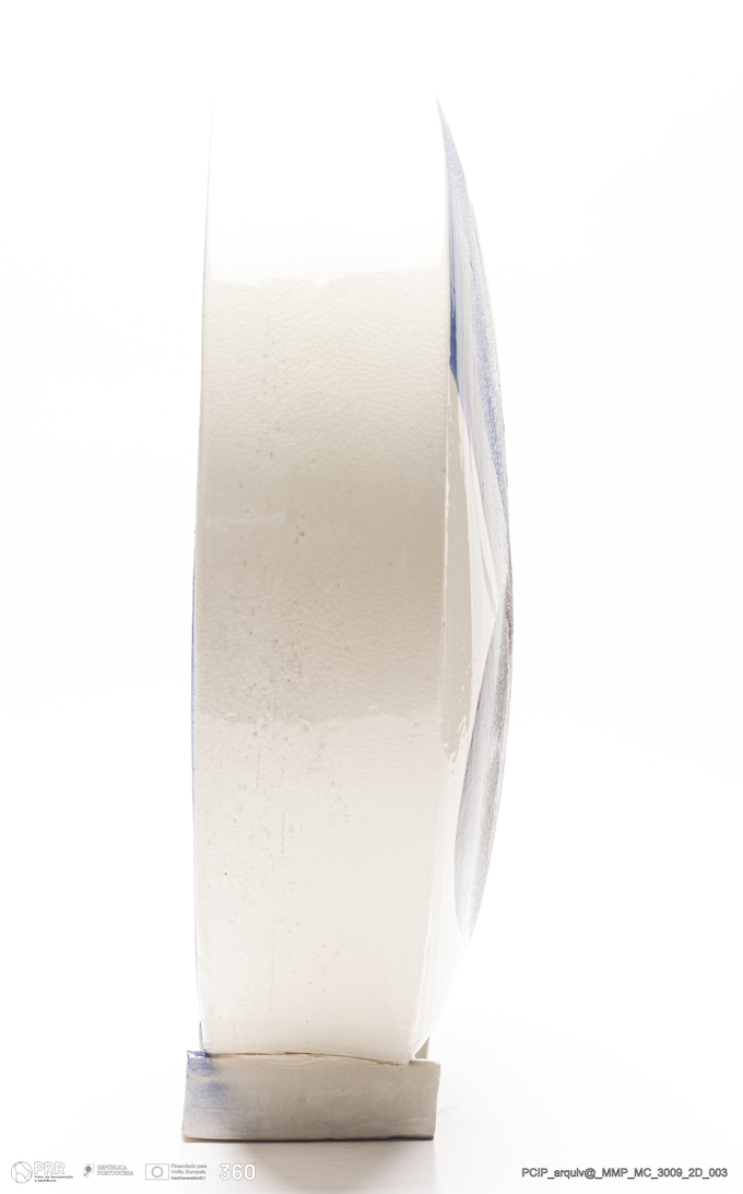 Matéria/Técnica: Grés modelado. Vidrado polícromo: branco, vários tons de azul, preto, amarelo mel e branco; Cronologia: século XX; Autoria: Eduardo Constantino / Atelier de Ceramique de Eduardo Constantino, Quimperlé/Bretanha, França; Dimensões (cm): Altura: 23.