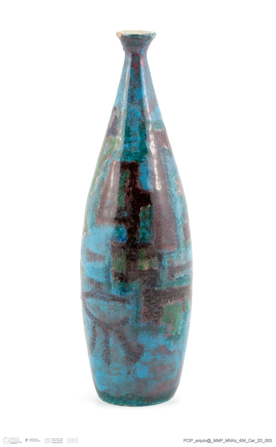 Matéria/ Técnica: Faiança; Cronologia: 1960-1965; Autoria: Segurado, João Lopes; Dimensões (cm): Altura: 35,5 cm; Diâmetro: 11 cm.