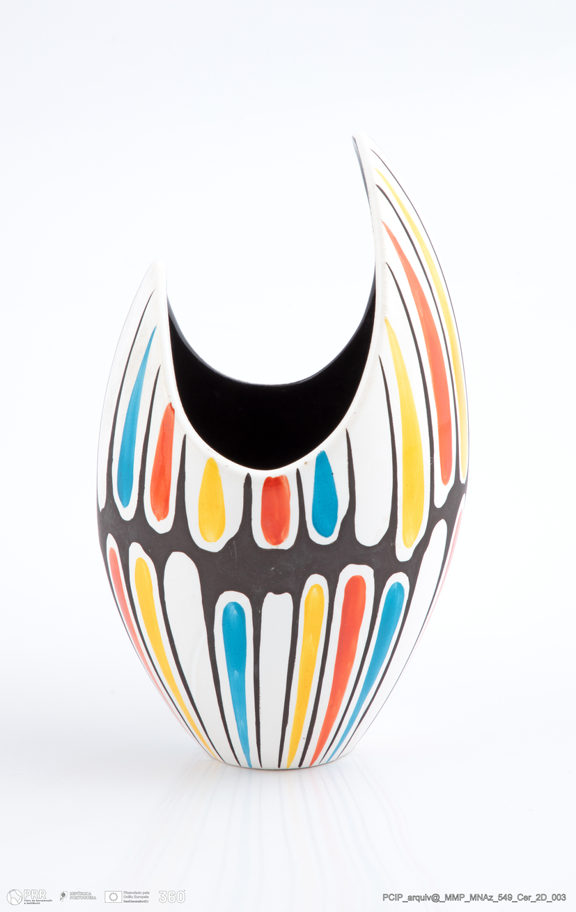 Matéria/ Técnica: Pó de pedra; Cronologia: Século XX; Autoria: Desconhecida; Dimensões (cm): Altura: 21 cm; Diâmetro: 13 cm.