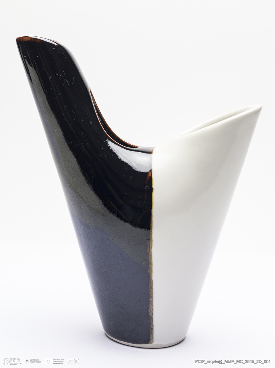Matéria/Técnica: Porcelana moldada. Vidrado polícromo: preto e branco; Cronologia: século XX; Autoria: Desconhecido / Japão; Dimensões (cm): Altura: 20; Largura: 6; Comprimento: 17.