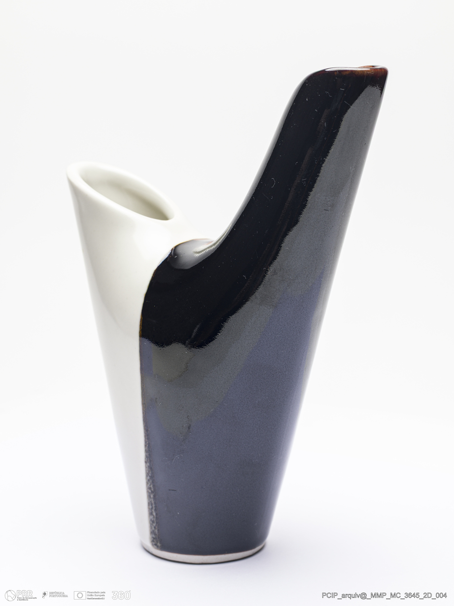 Matéria/Técnica: Porcelana moldada. Vidrado polícromo: preto e branco; Cronologia: século XX; Autoria: Desconhecido / Japão; Dimensões (cm): Altura: 20; Largura: 6; Comprimento: 17.