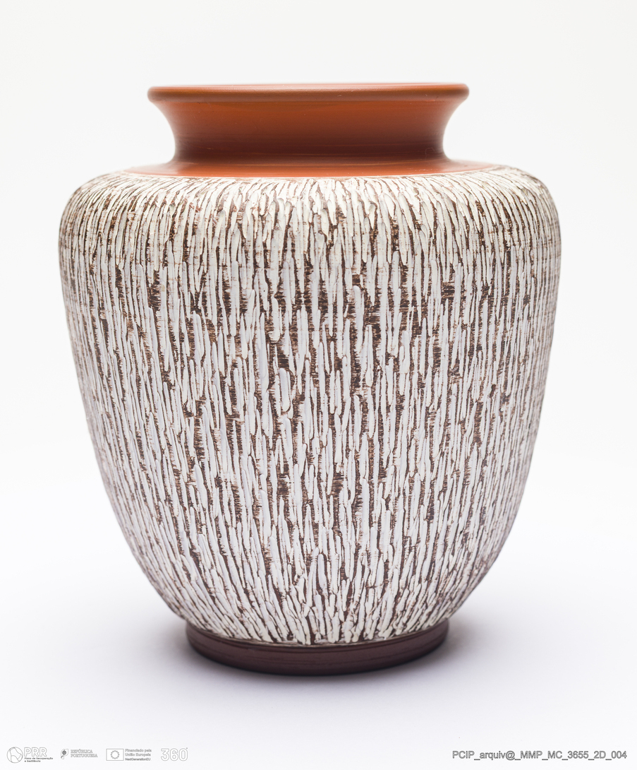 Matéria/Técnica: Barro vermelho rodado. Vidrado polícromo mate: castanho, vermelho e branco; Cronologia: 1960-1970; Autoria: Desconhecido / Scheurich, Alemanha; Dimensões (cm): Altura: 15; Diâmetro: 13.