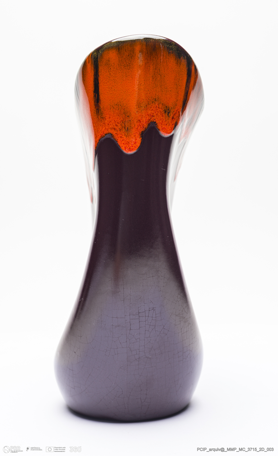 Matéria/Técnica: Barro vermelho moldado. Vidrado polícromo: castanho e vermelho; Cronologia: século XX; Autoria: Desconhecido / Canadá; Dimensões (cm): Altura: 25,5; Largura: 11; Comprimento: 14,5.