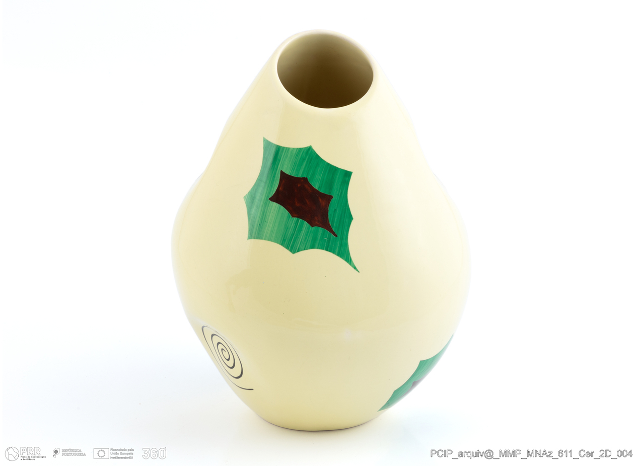Matéria/Técnica: Faiança moldada ; Cronologia: Século XX; Autoria: Desconhecida; Dimensões: Altura: 28 cm x Diâmetro: 22 cm.