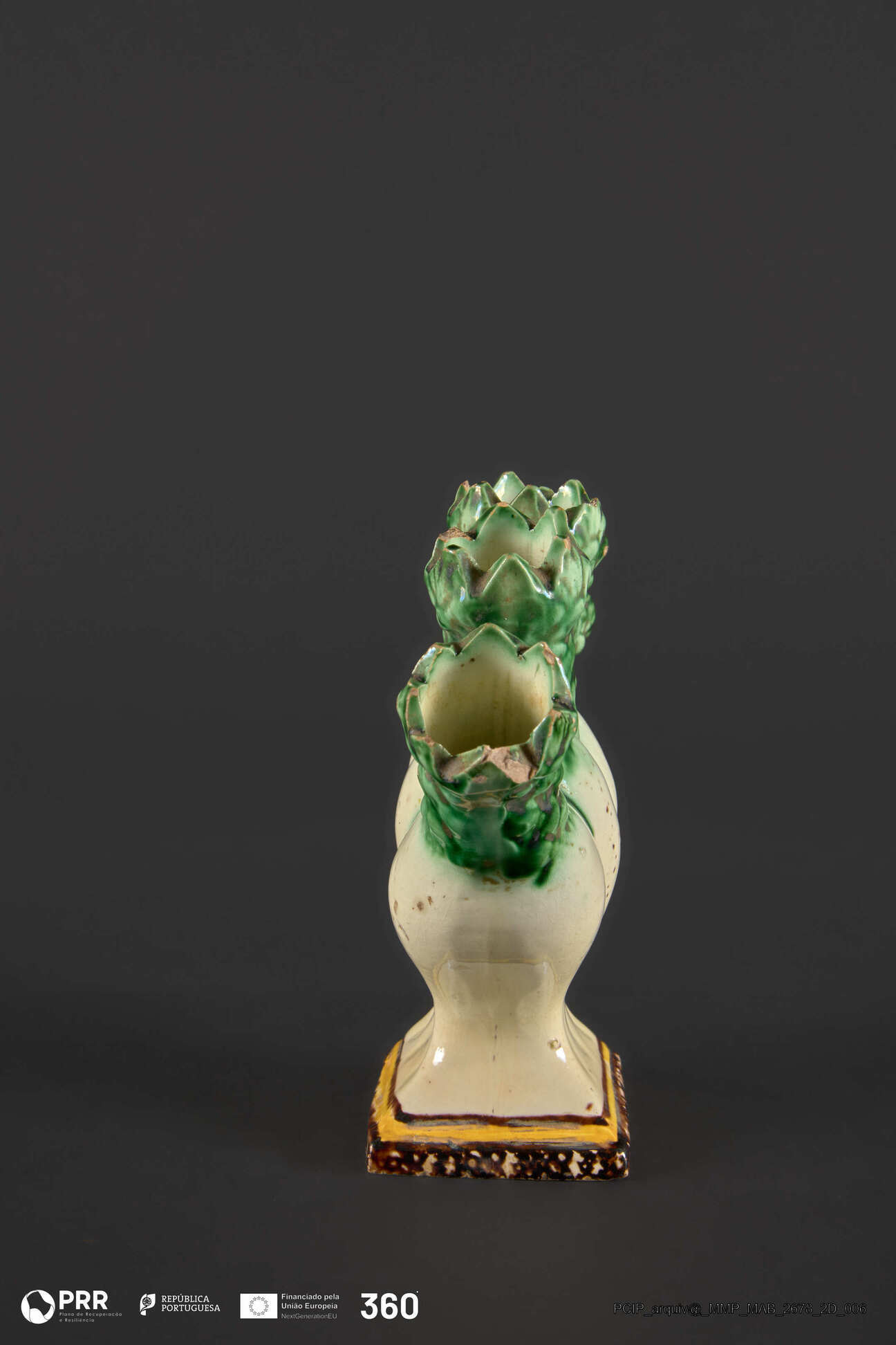 Matéria/Técnica: Faiança moldada e vidrada com decoração relevada pintada a azul; Cronologia: Desconhecida; Autoria: Desconhecida; Dimensões: Desconhecidas.