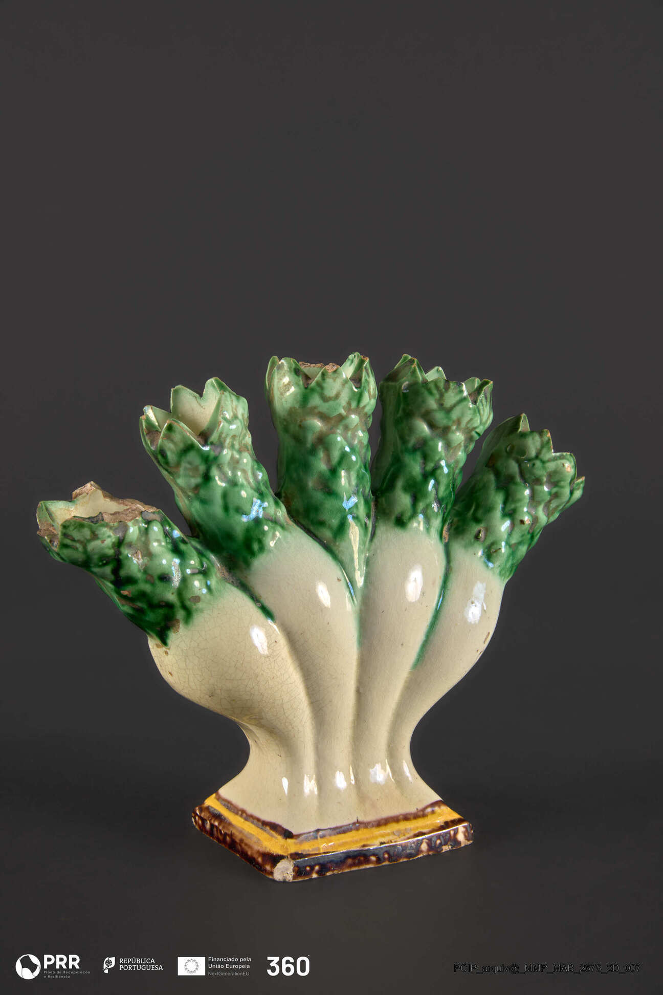 Matéria/Técnica: Faiança moldada e vidrada com decoração relevada pintada a azul; Cronologia: Desconhecida; Autoria: Desconhecida; Dimensões: Desconhecidas.