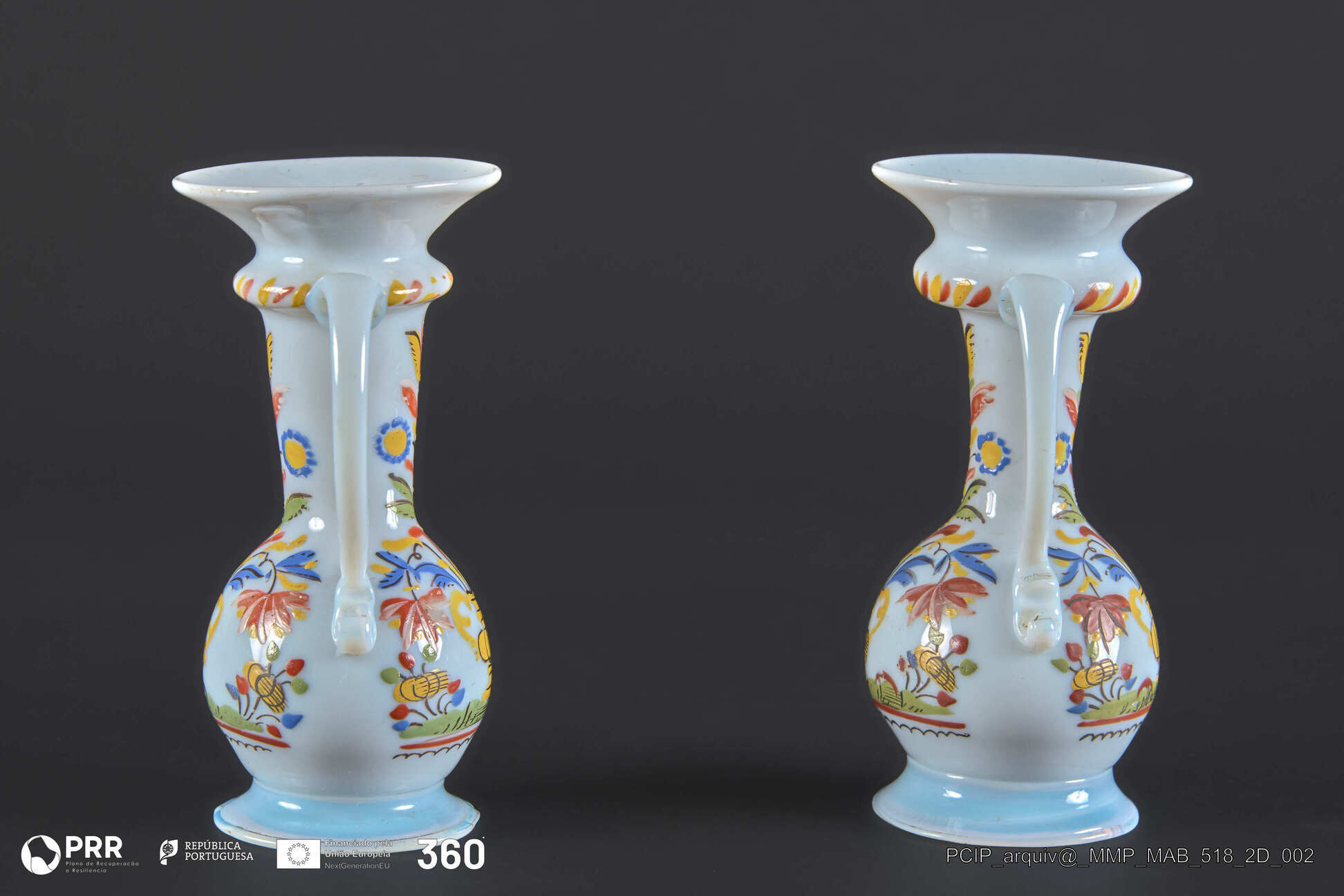 Matéria/Técnica: Vidro soprado coalhado. Decoração a esmalte; Cronologia: Desconhecida; Autoria: Desconhecida; Dimensões: Desconhecidas.