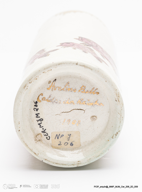 Matéria/Técnica: Desconhecida; Cronologia: 1908; Autoria: Avelino Bello; Dimensões: Altura: 17,1 x Diâmetro: 6,2 cm.