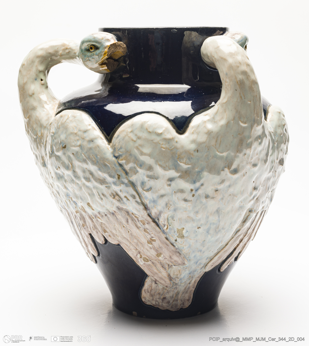 Matéria/Técnica: Barro vidrado; Cronologia: Desconhecida; Autoria: Manuel Gustavo Bordalo Pinheiro; Dimensões: Altura: 26 Diâmetro: 15 cm.