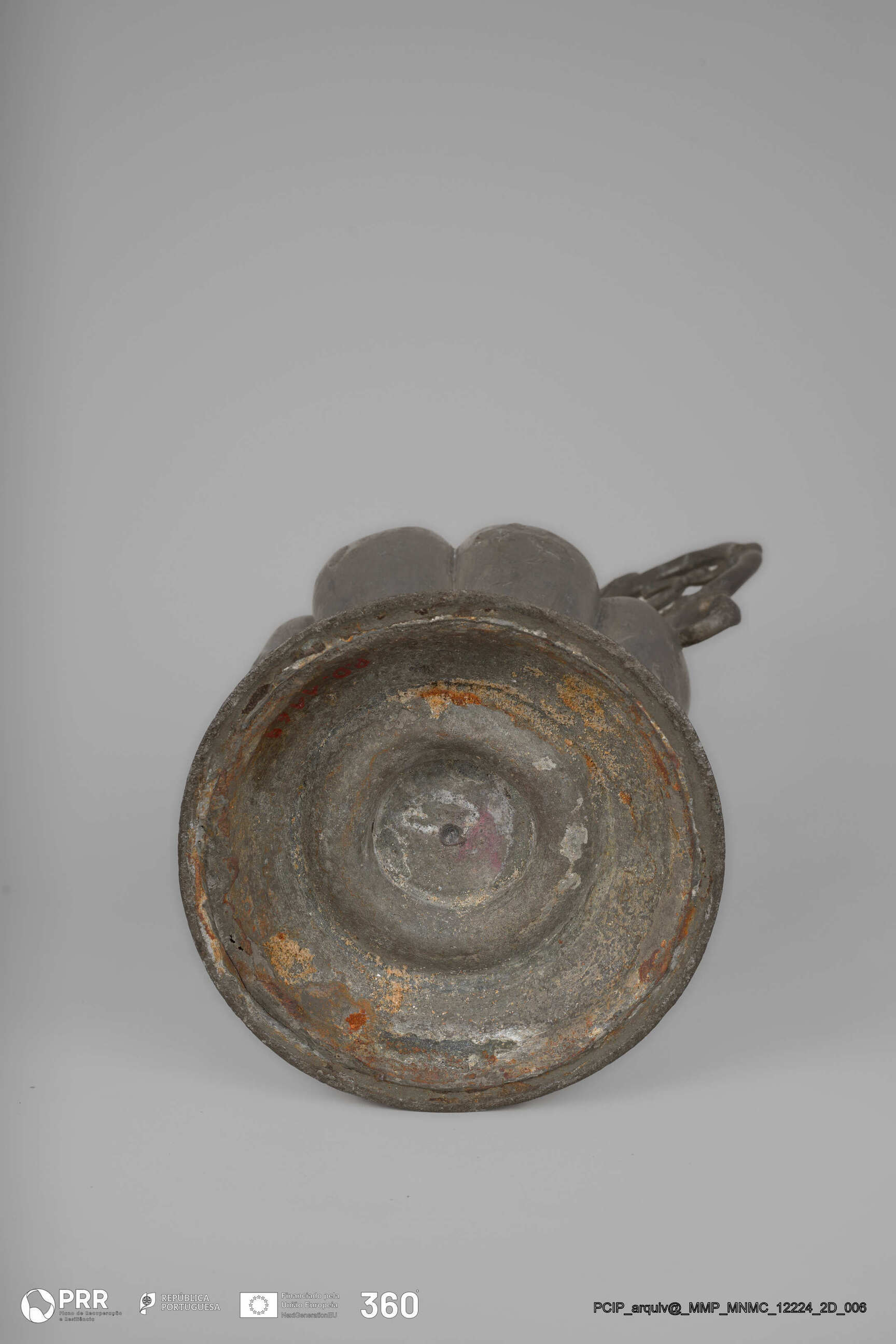 Matéria/Técnica: Desconhecida; Cronologia: Século XVIII; Autoria: Desconhecida; Dimensões (cm): Altura: 42,5; Diâmetro: Base - 17,2.