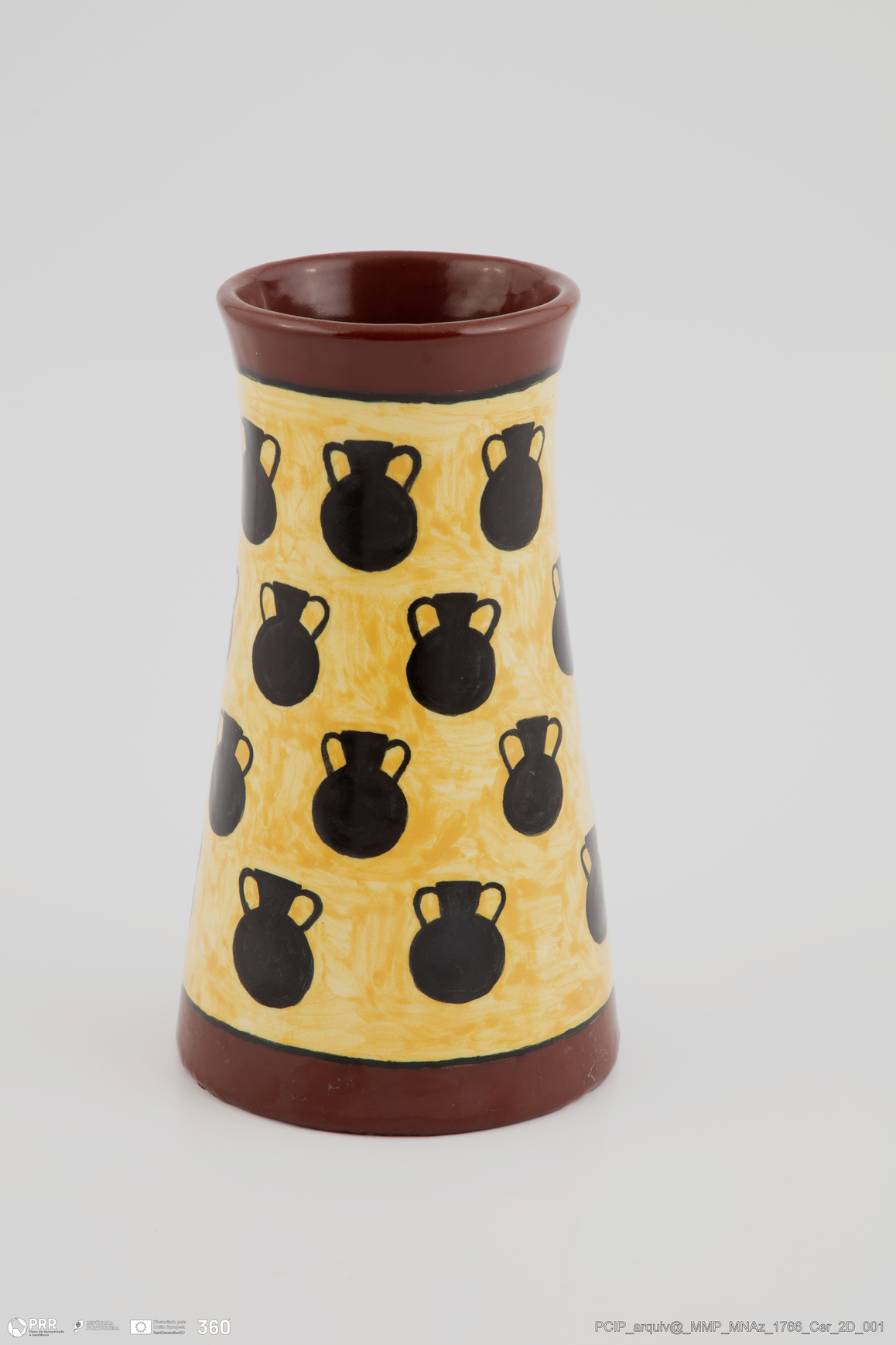 Matéria/Técnica: Faiança; Cronologia: ass.e dat. 58; Autoria: Artur José; Viúva Lamego; Dimensões: Altura: 24 cm x Diam. 13,5 cm.