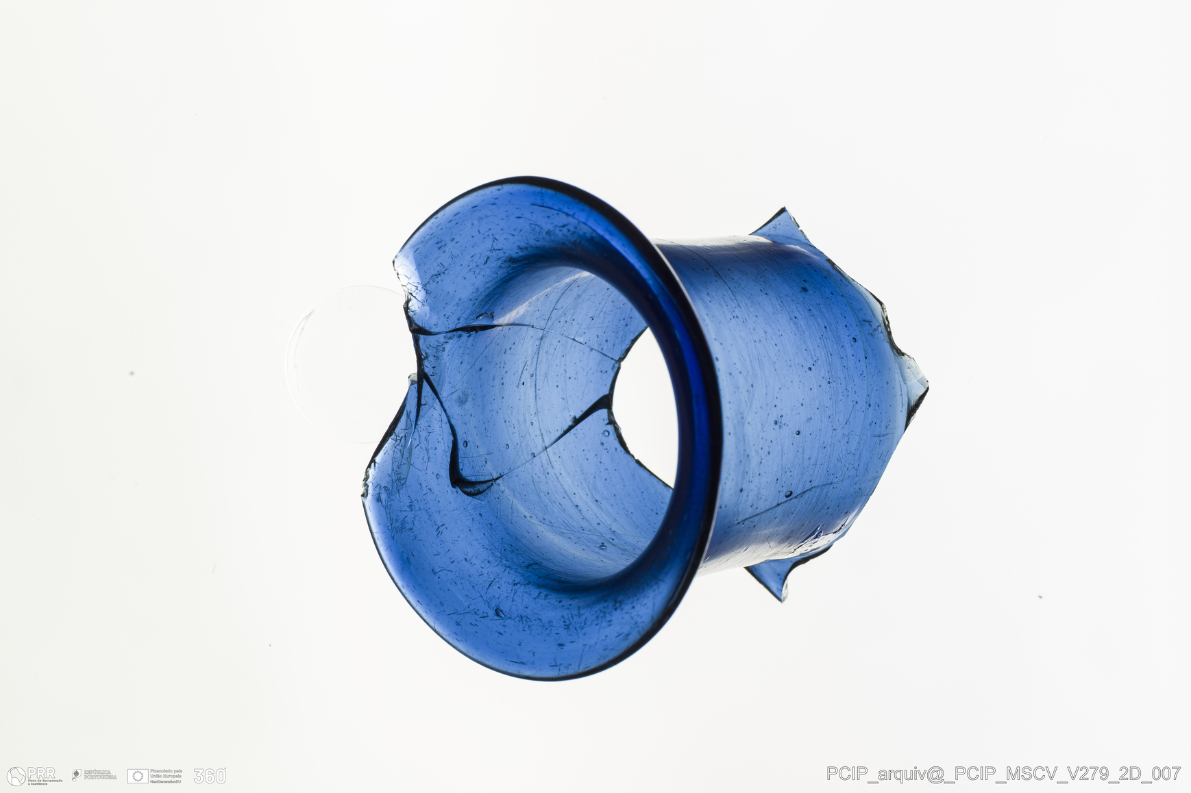Matéria/Técnica: Vidro; Cronologia: Século XVII; Autoria: Desconhecida; Dimensões: Diâmetro bordo: 63mm.