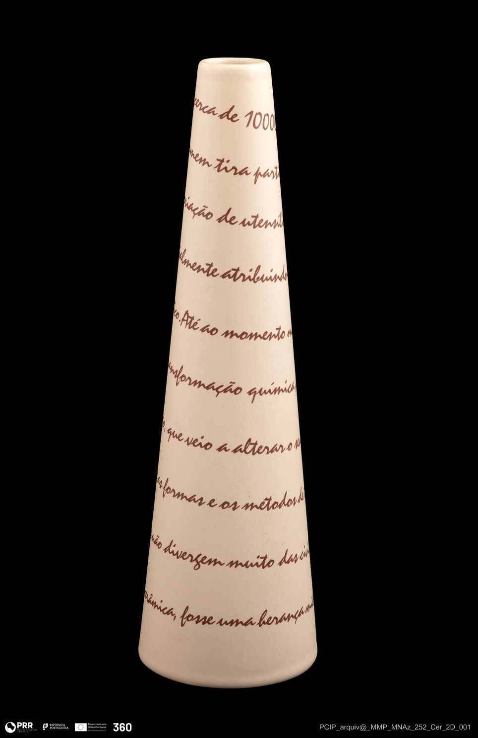 Matéria/ Técnica: Porcelana; Cronologia: 1999; Autoria: Rosa, Rute; Dimensões (cm): Altura: 27,5; Diâmetro: 8,3.
