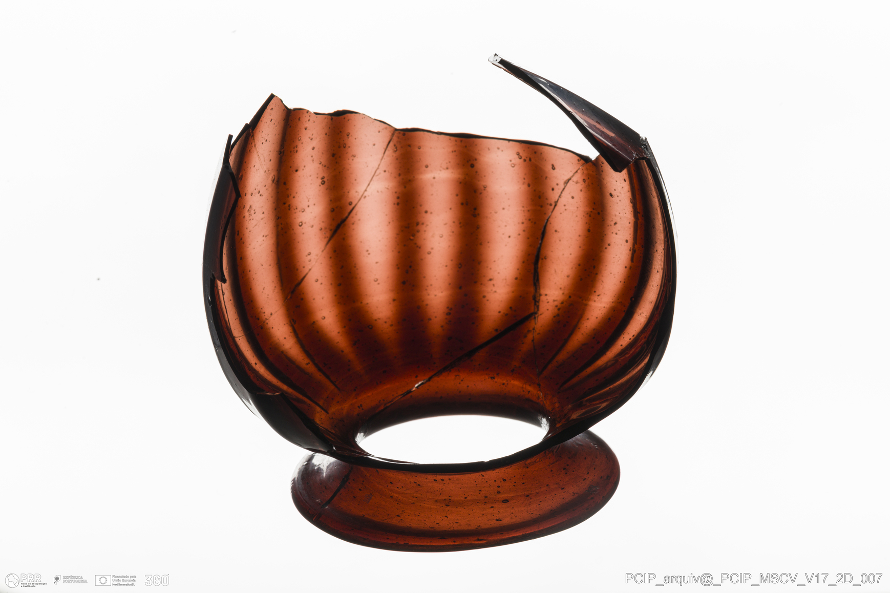 Matéria/Técnica: Vidro; Cronologia: Século XVII; Autoria: Desconhecida; Dimensões: Diâmetro bordo: 54mm.