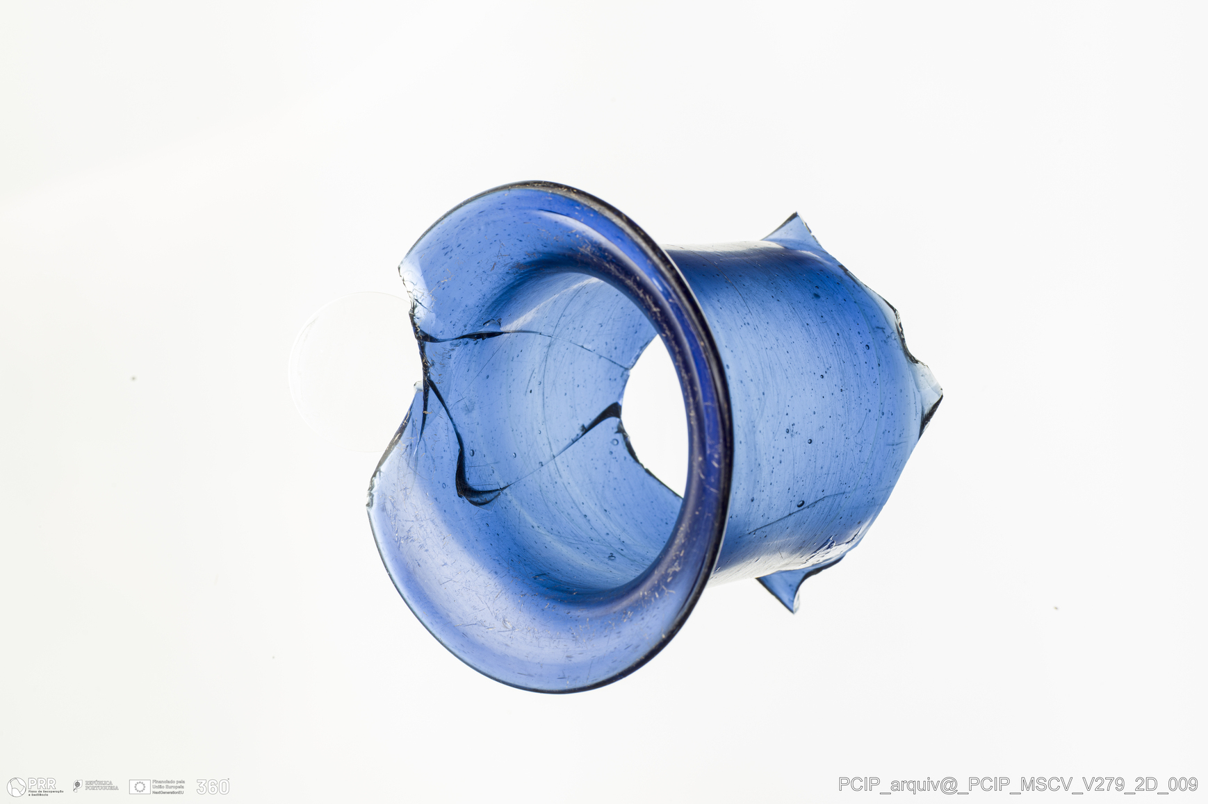 Matéria/Técnica: Vidro; Cronologia: Século XVII; Autoria: Desconhecida; Dimensões: Diâmetro bordo: 63mm.