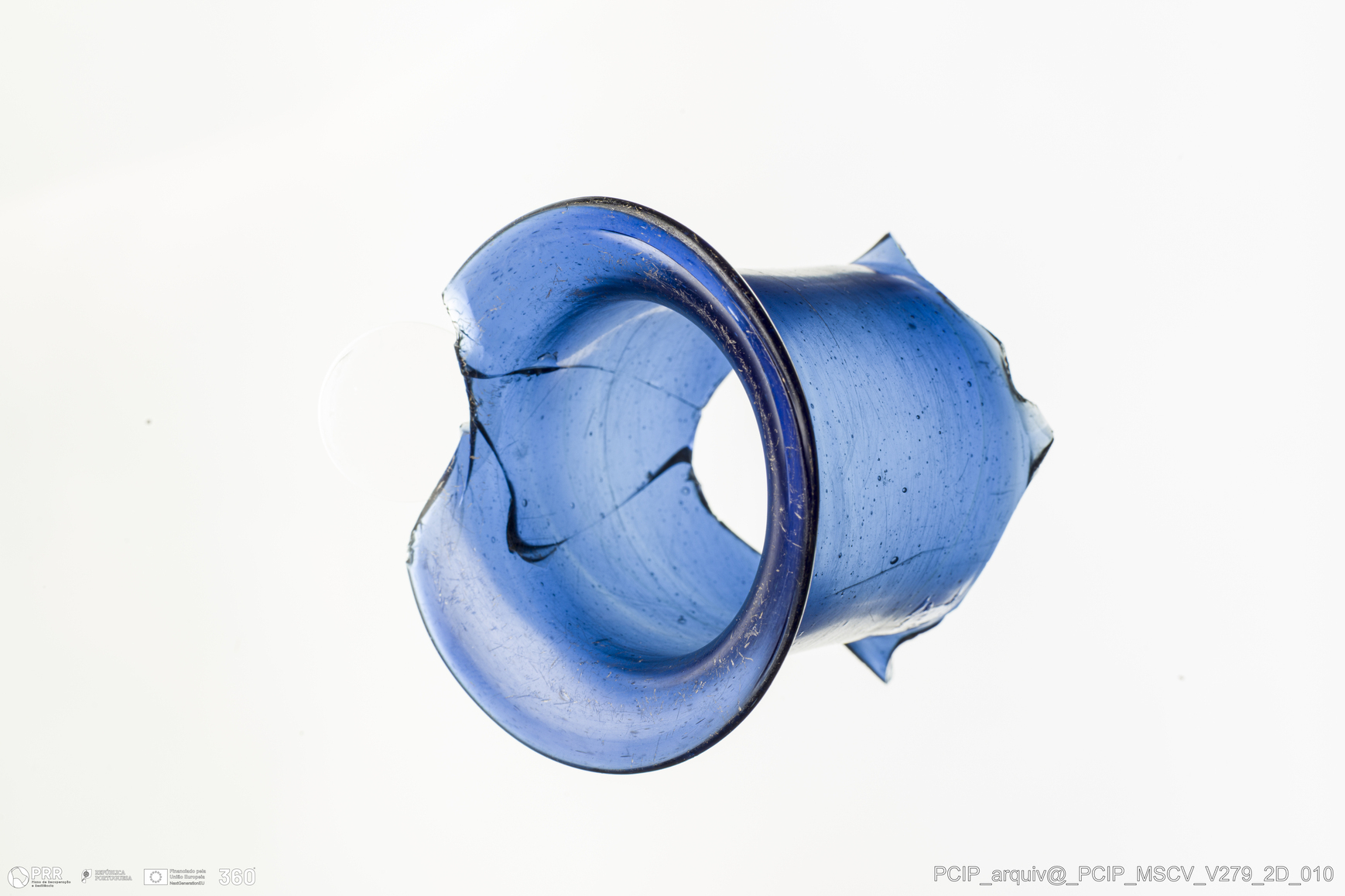 Matéria/Técnica: Vidro; Cronologia: Século XVII; Autoria: Desconhecida; Dimensões: Diâmetro bordo: 63mm.