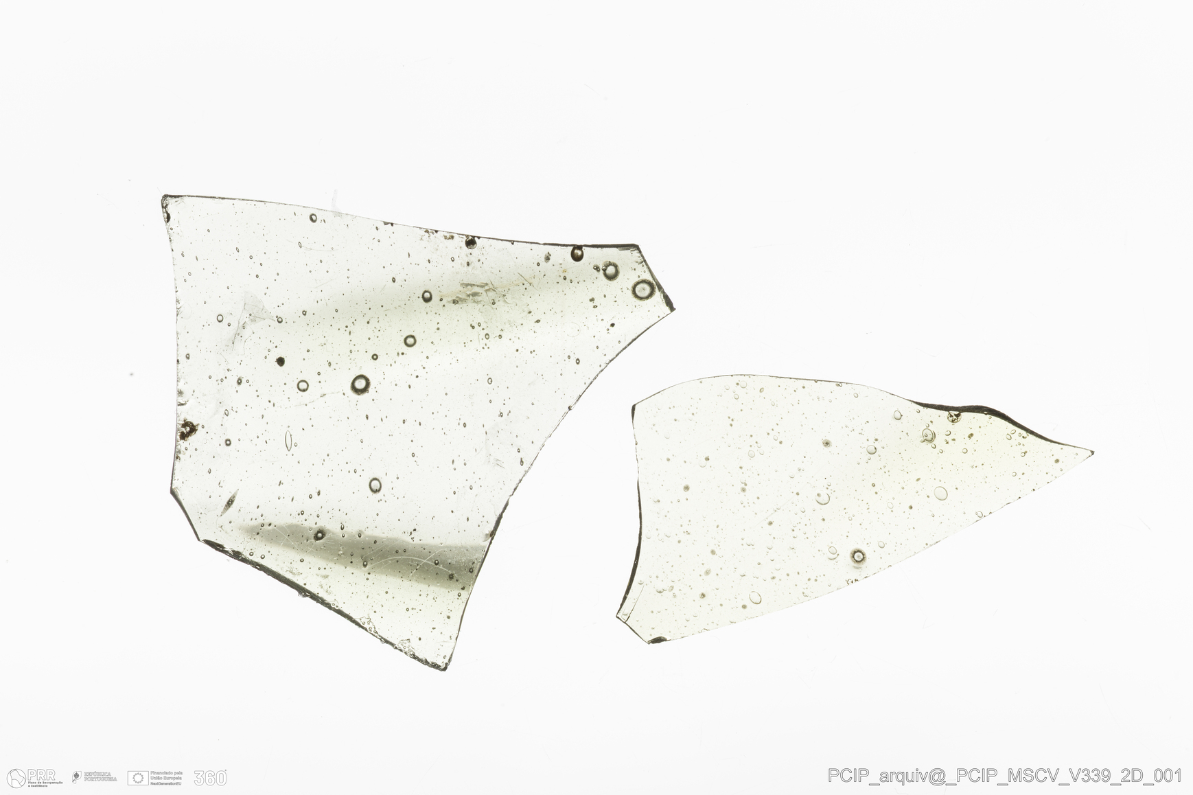 Matéria/Técnica: Vidro; Cronologia: Século XVII; Autoria: Desconhecida; Dimensões: Comprimento: 32mm; Largura: 28mm.