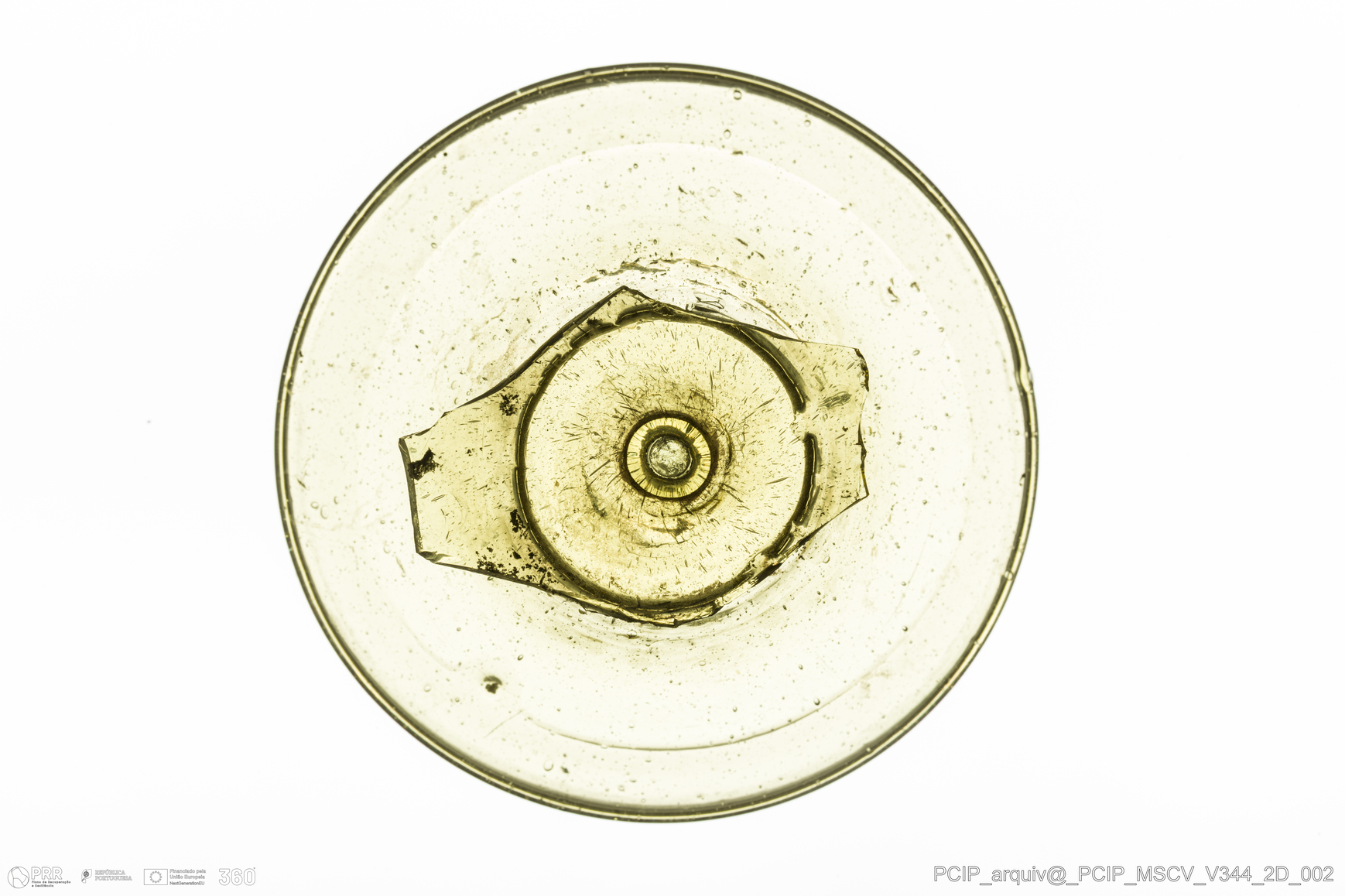 Matéria/Técnica: Vidro; Cronologia: Século XVII; Autoria: Desconhecida; Dimensões: Diâmetro base: 80mm.