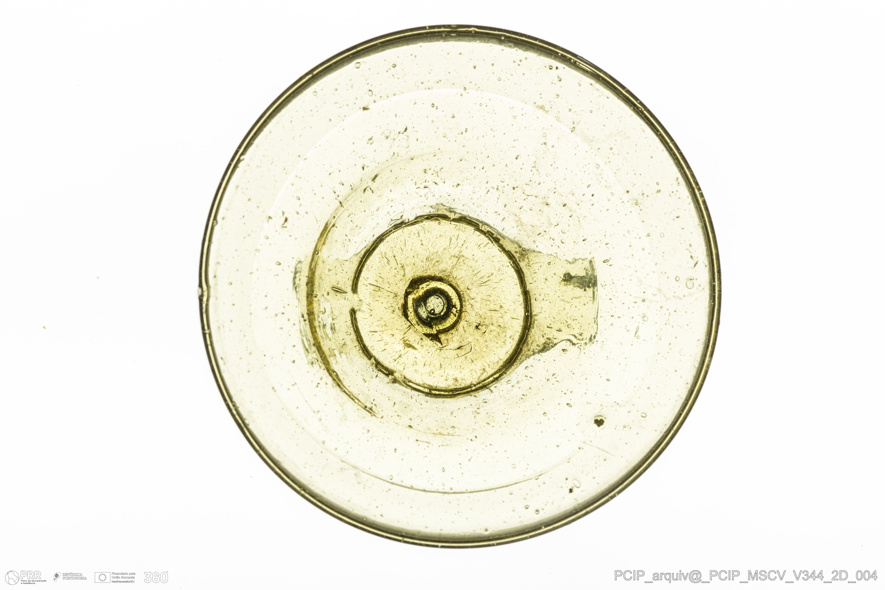 Matéria/Técnica: Vidro; Cronologia: Século XVII; Autoria: Desconhecida; Dimensões: Diâmetro base: 80mm.