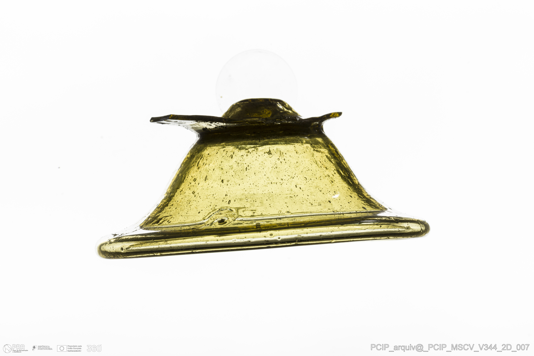 Matéria/Técnica: Vidro; Cronologia: Século XVII; Autoria: Desconhecida; Dimensões: Diâmetro base: 80mm.