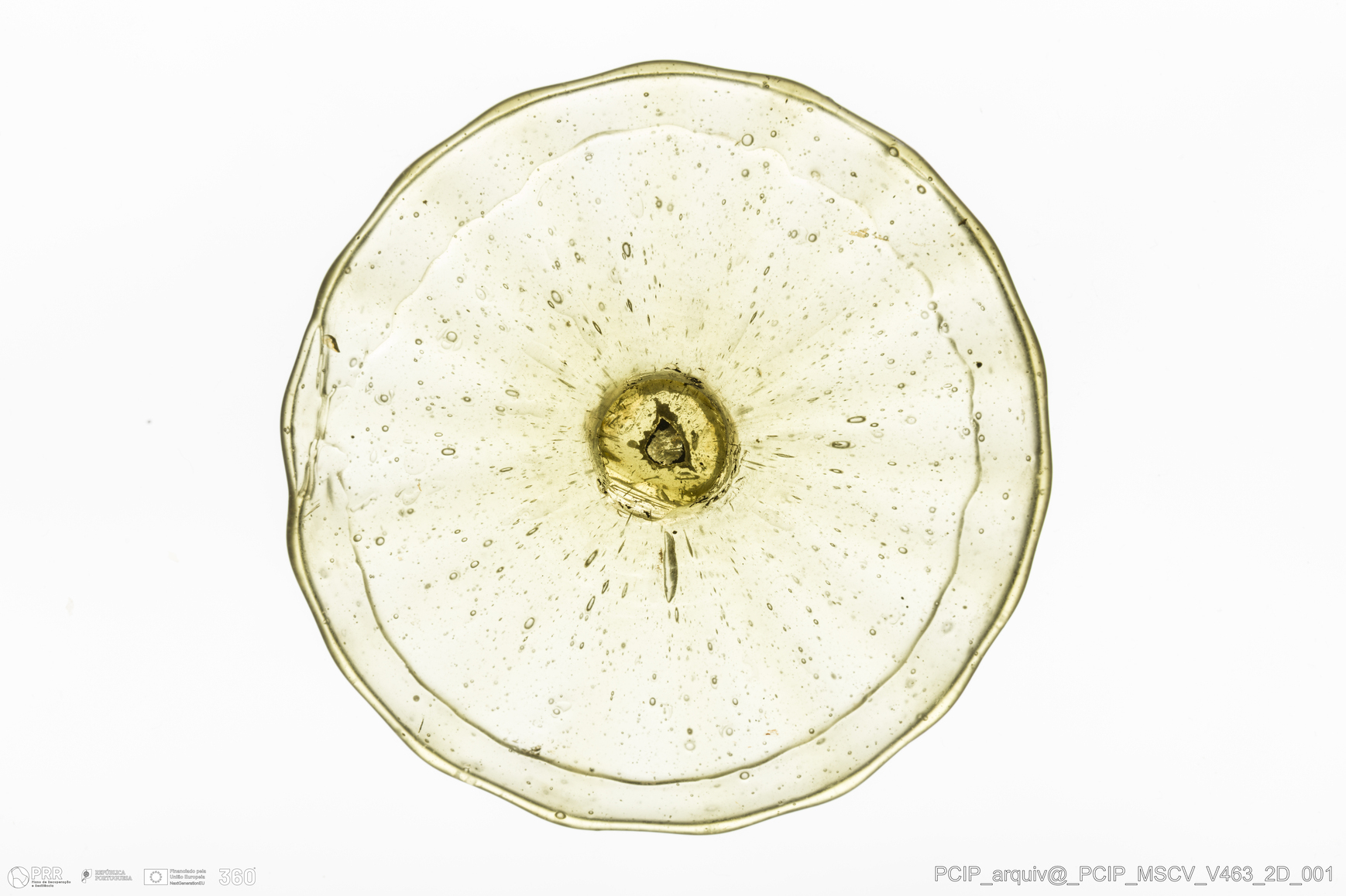 Matéria/Técnica: Vidro; Cronologia: Século XVII; Autoria: Desconhecida; Dimensões: Diâmetro Base: 77mm.